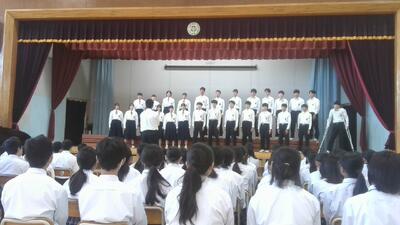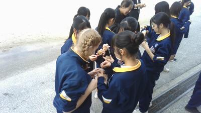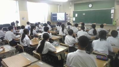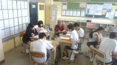 本校での一日の体験を終え、女子生徒は、「楽しかった。友達がたくさんできた。制服や給食があるなどドイツの学校と違うところもたくさんあった。給食では揚げパンがおいしかった。」などと感想を述べてくれました。あと1日本校に来てくれることになっています。貴重な体験と良い思い出をたくさん作ってほしいと願っています。