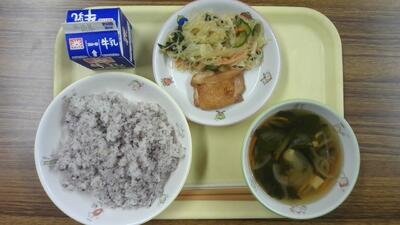 ごはん、松風焼き、おかか和え、七草汁、牛乳でした。