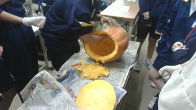 この日に向けて、本校の先生がなんと26kgもある大きなカボチャを取り寄せてくれました。