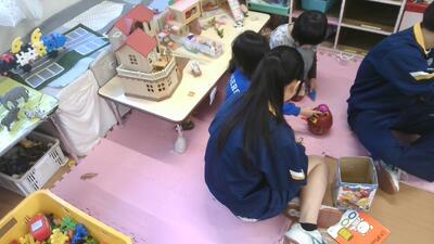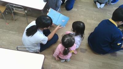まずは園児たちとご対面です。その後、読み聞かせをしたり、一緒に遊んだりしながら園児たちと交流しました。