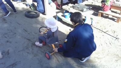 生徒たちは、園児たちの素直さと人懐っこさにすぐに打ち解け、楽しい時を過ごしていました。実習中の生徒は、誰もが優しい「お兄さん」「お姉さん」になっていました。