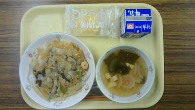 2学期最後の給食は、ロールパン、ハニーマスタードチキン、クリスマスサラダ、カボチャのポタージュ、クリスマスチョコケーキ、牛乳でした。