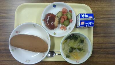 ごはん、桜エビ入り卵焼き、ツナ入りキャベツのごま和え、五目中華スープ、牛乳でした。