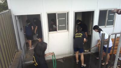 それでも約1時間後、みんなの努力でかなりきれいになりました。しかし、今度は排水溝が詰まってしまい、汚い水が底にたまったままになってしまいました。