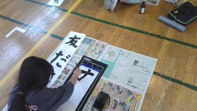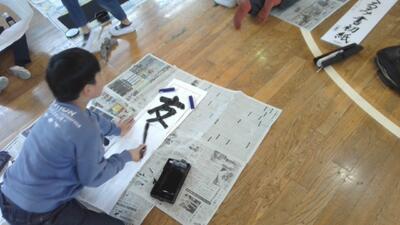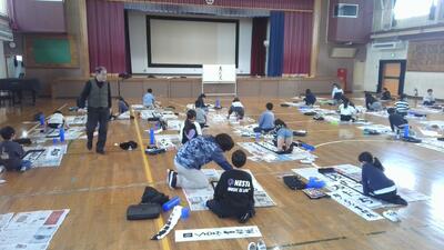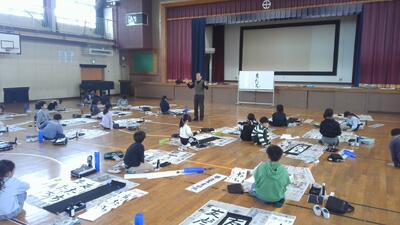 冬休みに行う「書初め」の練習ということで、5年生、3年生の児童対象に行われました。
