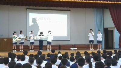 9月20日、全校集会の場で図書委員の生徒たちがこれらの取組を紹介しました。その後興味を持ってくれた生徒たちが図書室を訪れてくれています。