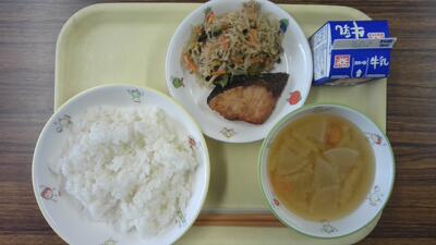 ごはん、ブリの照り焼き、しらたきのソテー、大根の味噌汁、牛乳でした。