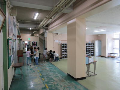 2年生の教室では1年生を招いての楽しいおもちゃ屋台が開かれていました。