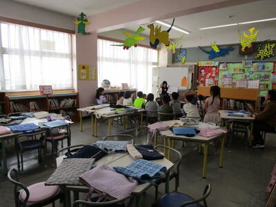 1年生におもちゃの作り方を伝えます。ここで国語の大切な勉強です。