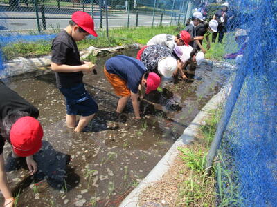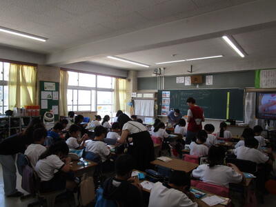 5年生がみずがき隊(地域支援者)の方々の指導を受け