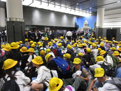 国会に到着。たくさんの小学校、中学校の見学がありました。