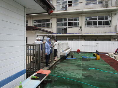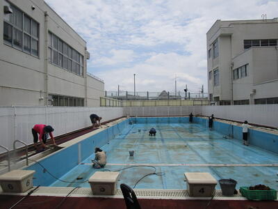 教職員と保護者ボランティアの皆さんとで協力して作業します。