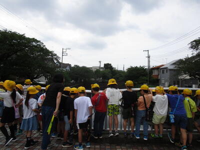 2年生町探検です。保護者ボランティアのみなさんの協力のもと
