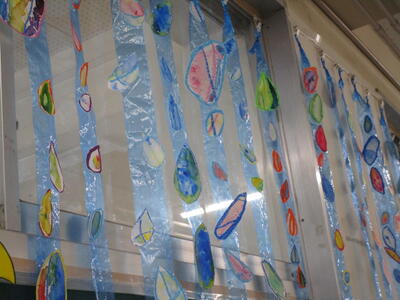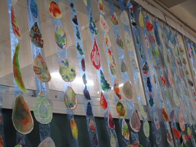 3年生の作品です。絵具でにじみを生かして制作しました。