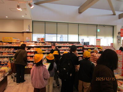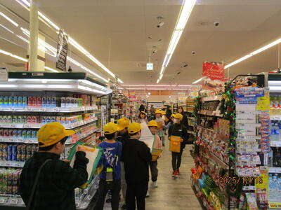 今日は3年生(3、4組)がスーパーマーケットの人気の秘密を調べるために