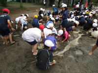 5年生がみずがき隊(地域支援者)の方々の指導を受け