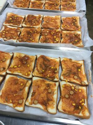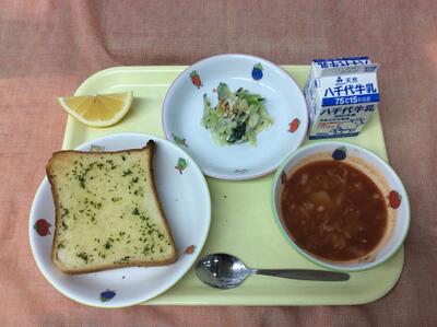 先ほど掲載したガーリックトーストが、このように給食にて提供されました✨