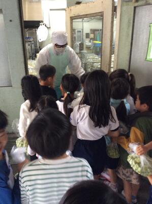 ものすごく上手にむけたそら豆たちは、代表の児童が給食室(厨房)に届けてくれました。