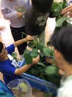 ほくほくに茹で上がったそら豆は、クラスごとに数を数えて配缶しました。