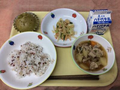 献立:牛乳 ごはん 納豆和え 筑前煮(福岡県) みかん