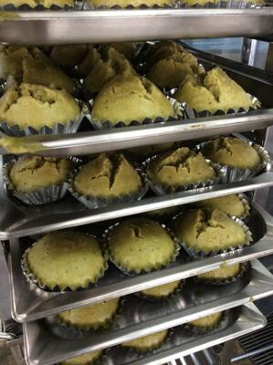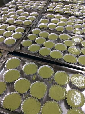 調理師さんたちが、粉・砂糖・抹茶をふるい、