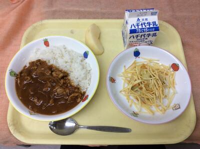献立:牛乳 カレーライス パリパリひじきサラダ ヨーグルト