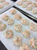 肉がはがれにくくなるように、蓮根に打ち粉をしてから肉ダネを詰めてくれています。