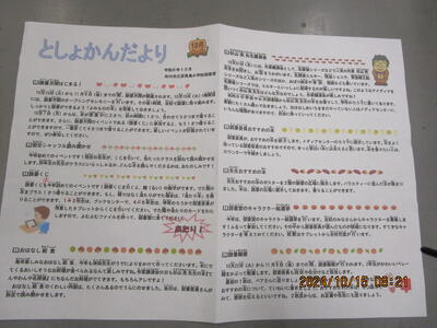 それと今日から保護者の皆様による図書館ボランティアの活動がスタートしました。