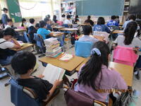 5年生、国語の授業です。新聞の構成を知り、活用できるように