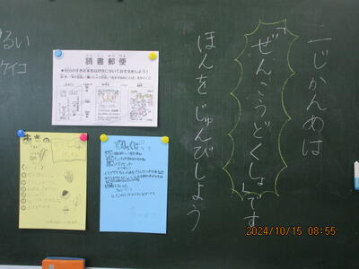 いろいろな取り組み計画されています。15日には図書委員によるオープニングセレモニーが放送でありました。そのあと全校で1時間、【全校読書】をしました。校内をまわるとシーンと静かに本に集中する姿が見られました。