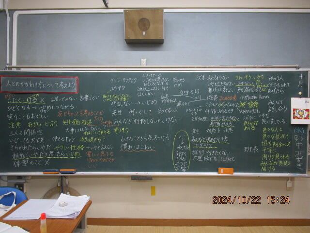 以前は子どもたちが短冊やカードに自分の意見を書いて黒板にはり、