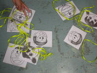 1年生が育てていたあさがおのつるでリースづくりをしました。支柱からつるをとるのに苦戦。今年は特にまだ、元気のよい緑の茎の子も多くなかなか支柱から外れず、お手伝いの保護者の方に助けていただきました。