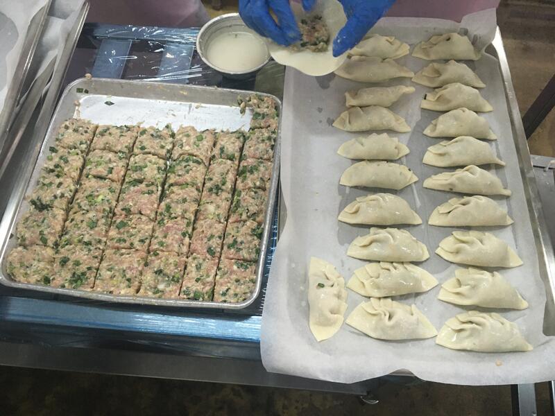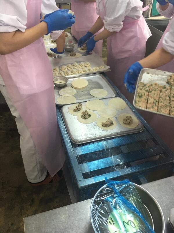 低学年の餃子を包んでいるところです。