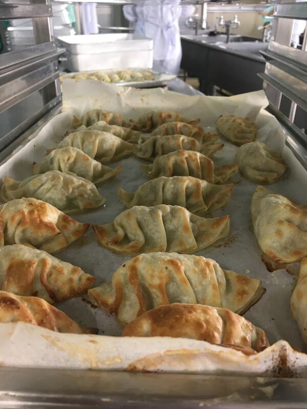 給食で揚げ餃子は出ますが、焼き餃子は珍しいと思います。本番前に調理員さんと相談や試し焼きをして焼き加減を研究しました。