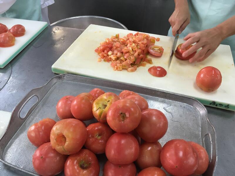 トカゲのおばあさんが入れたチャイブやローズマリーも少量ですが使用したため、少し大人向けのトマトスープになりました。ローズマリーのをいくつかのクラスで嗅いでもらいましたが、嗅ぎ慣れている子もいれば、初めての香りに驚いている子もいました。