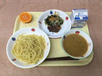 献立:味噌つけ麺 チャーシュー わかめともやしの中華和え みかん