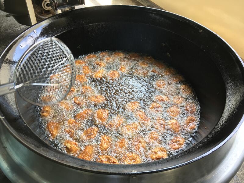 揚げ餃子は1個ずつ給食室で手作りしています。