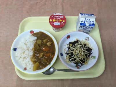 献立:牛乳 ポークカレー ひじき煮 ヨーグルト