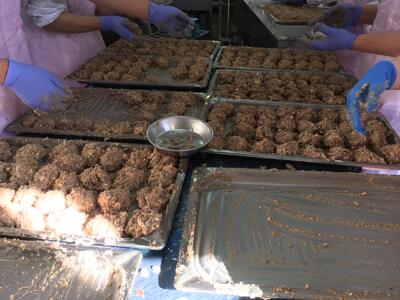 給食では調理してから、子供達が食べるまで時間があるため、硬めの団子を作ってもらいました。