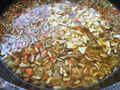 いりこと昆布で濃いめの出汁を取り、野菜を炒め、だし汁で煮ます。入れる具材が多いため、家にある身近な食材で代用してつくることができます。