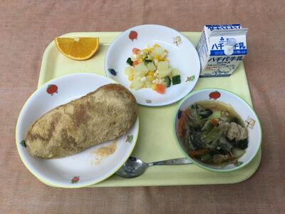 献立:牛乳 さつまいもパン ジャーマンポテト 肉団子スープ