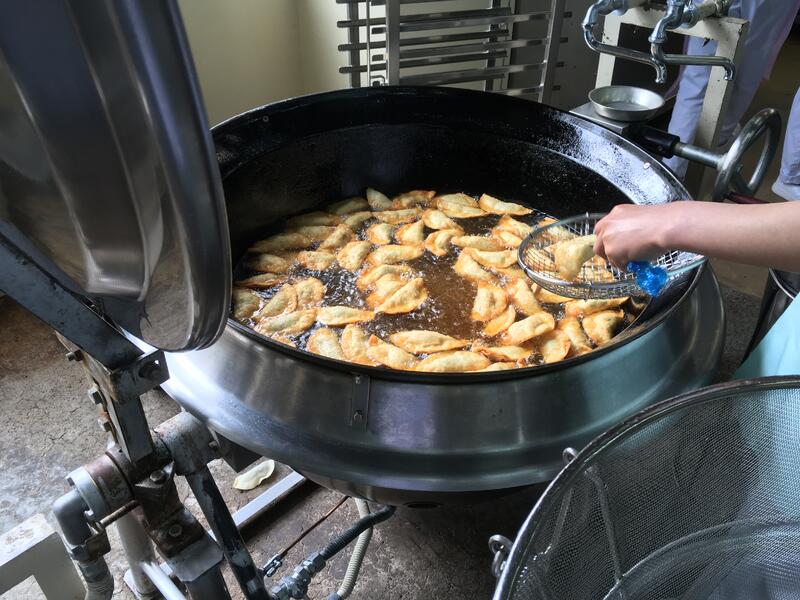 揚げ餃子は1個ずつ給食室で手作りしています。