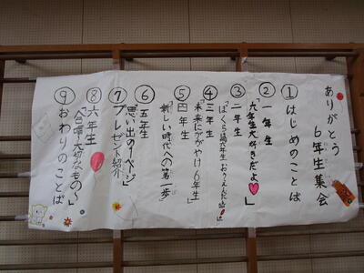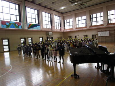 2月24日(金) ありがとう6年生集会 投稿日時 : 2023/02/24 冨貴島小学校管理者 今日は「ありがとう6年生集会」でした。 それぞれの学年で、6年生への感謝の気持ちを伝えました。 最後、6年生の合唱・・・素晴らしかった! 卒業まで、あと16日