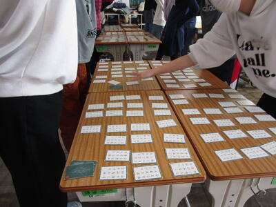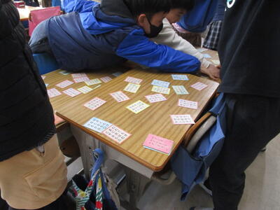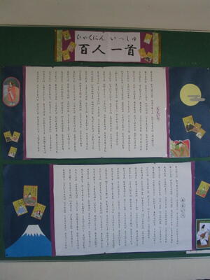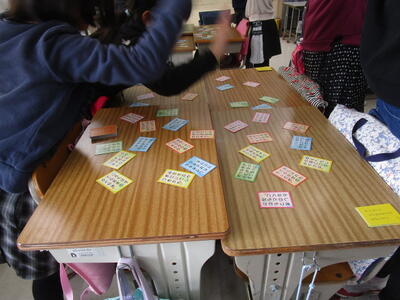 低学年は、【5色百人一首】で色札を決めて少ない数から初めています。高学年になると全部になります。