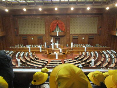 国会では、警備が厳しい中、国会の物々しさを感じながら、赤絨毯の上を歩いて見学しました。
