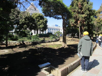 議事堂の外に出て各県の木が植えてある道を歩き、千葉県の木【マキ】を見てから、