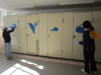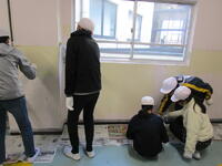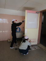 壁のペンキ塗り、トイレのドアのペンキ塗りや絵を描くこと、クラス表示札づくり、