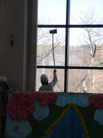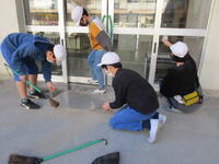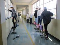 昇降口や階段・廊下、渡り廊下のそうじ、普段できない窓の掃除、廊下の真ん中の黄色い線の張替え、