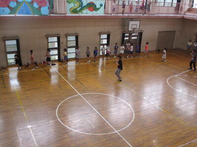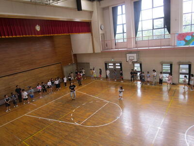 体育館は暑かったので、汗びっしょりになって楽しそうに踊っていました。