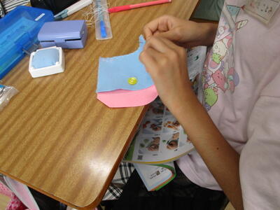 針の糸通しから始まった5年生のソーイングは、まとめで小物づくりに取り組んでいます。だいぶ上達しました。そし